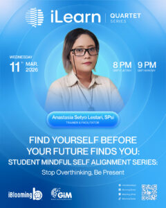 Reconnect with your sense of self in “FIND YOURSELF BEFORE YOUR FUTURE FINDS YOU: Student Mindful Self Alignment Series” featuring Anastasia Setyo Lestari, SPsi. This session focuses on the practical tools of mindfulness to help individuals move past the cycle of overthinking and ground themselves in the present moment.