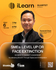Master “SMEs: Level Up or Face Extinction – 90 Days to Market Leadership: Accelerating Growth Through Digital and AI Integration” with Suwandi Chow, as we explore how small and medium enterprises can rapidly scale and secure a competitive edge using digital tools and AI. This session will reveal strategies to streamline operations, optimize decision-making, and drive accelerated growth.